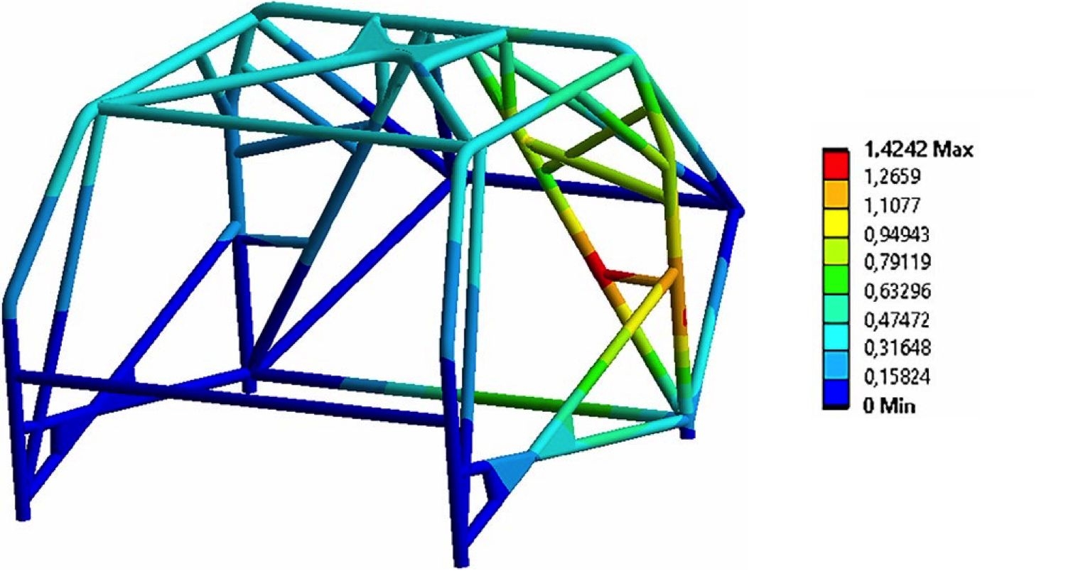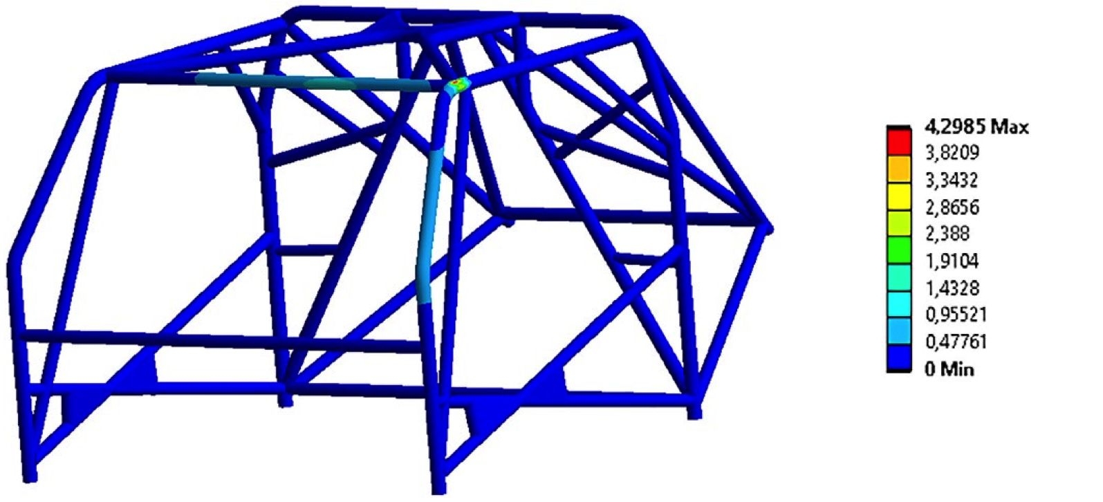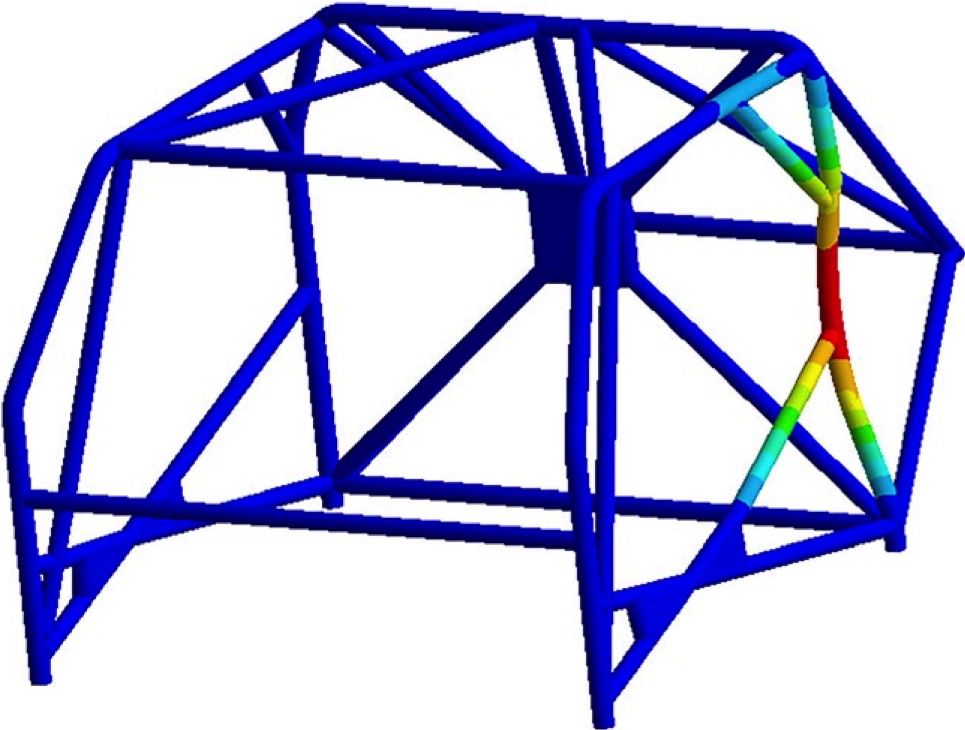 - Дальнейшее исследование НДС каркаса безопасности должно проводиться совместно с КЭМ автомобиля для учёта нагрузок, возникающих в результате деформации кузова.