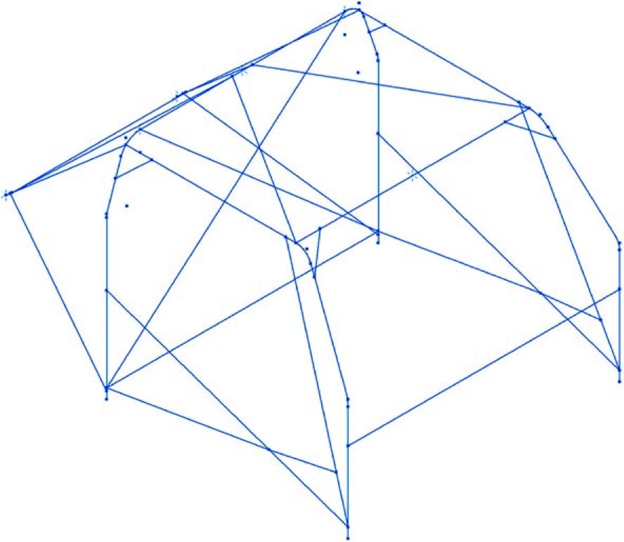 В результате оптимизации получена карта псевдоплотностей материала, в соответствии с которой была создана модель, показанная на рис. 5, со следующими параметрами: сечение главной и боковых дуг изменено с 45×2,5 мм на 40×2,5 мм, дополнительных элементов — с 40×2 мм на 35×2 мм; некоторые дополнительные элементы в плоскости главной дуги выполнены из труб сечением 35×1,5 мм.
