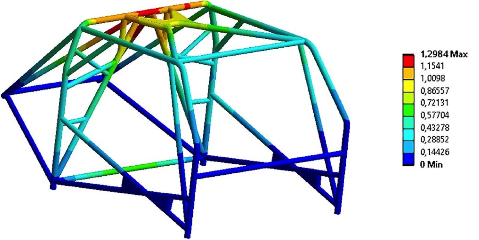 Анализ напряженно-деформированных состояний (НДС) оптимизированного каркаса безопасности