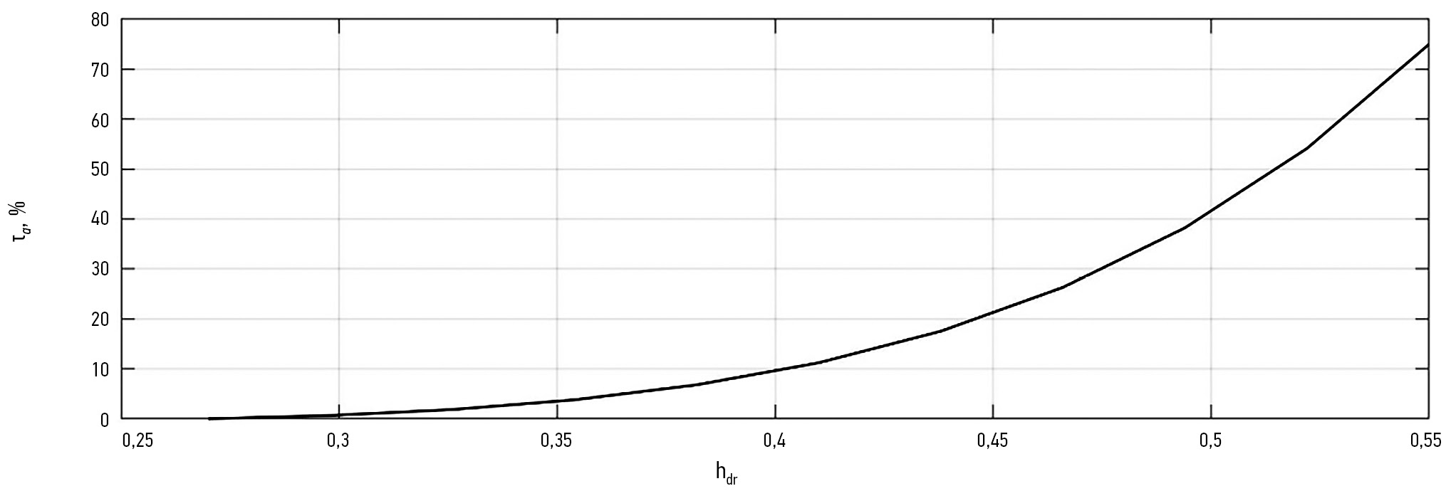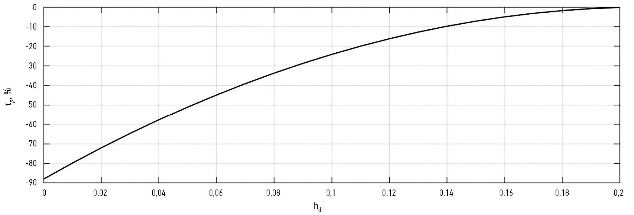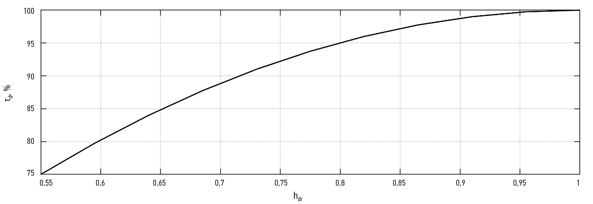 На рис. 7 показана зависимость τp от hdr для электробуса КАМАЗ-6282 для V = 35 км/ч, τpm=88%, hdr=0,21.