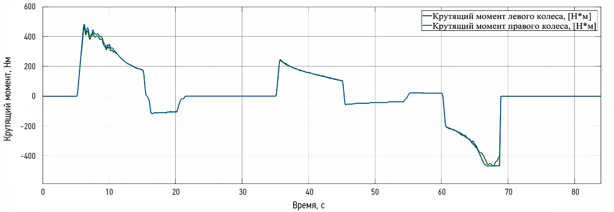 Рис. 14. Реализация крутящих моментов на ведущих колесах электробуса.