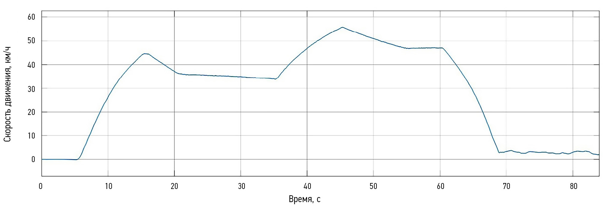 Рис. 16. График скорости движения электробуса в процессе движения.