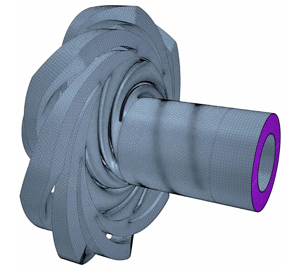Проточная часть насоса была моделировалась на объемной сетке, состоящей из 2.335.845 ячеек. В ядре потока генерировались многогранные ячейки, у твердых стенок – призматические, что позволило более точно рассчитать течение в пограничном слое. Расчетная сетка представлена на рис. 2.