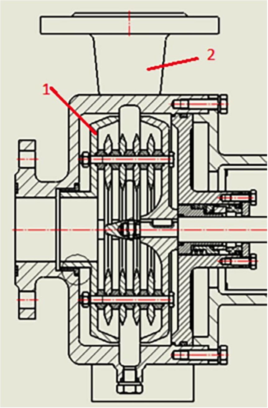 Dynamic disk pumps, unlike their centrifugal counterparts, do not feature profiled blades within their impellers (Fig. 1). Instead, the impeller of a classic disk pump consists of a package of two or more smooth disks. These pumps are particularly suited for applications that involve pumping high-viscosity liquids [1, 2]. However, the use of disk pumps in handling low-viscosity media has also been noted, sparking interest in calculating and predicting their characteristics under such conditions [3].