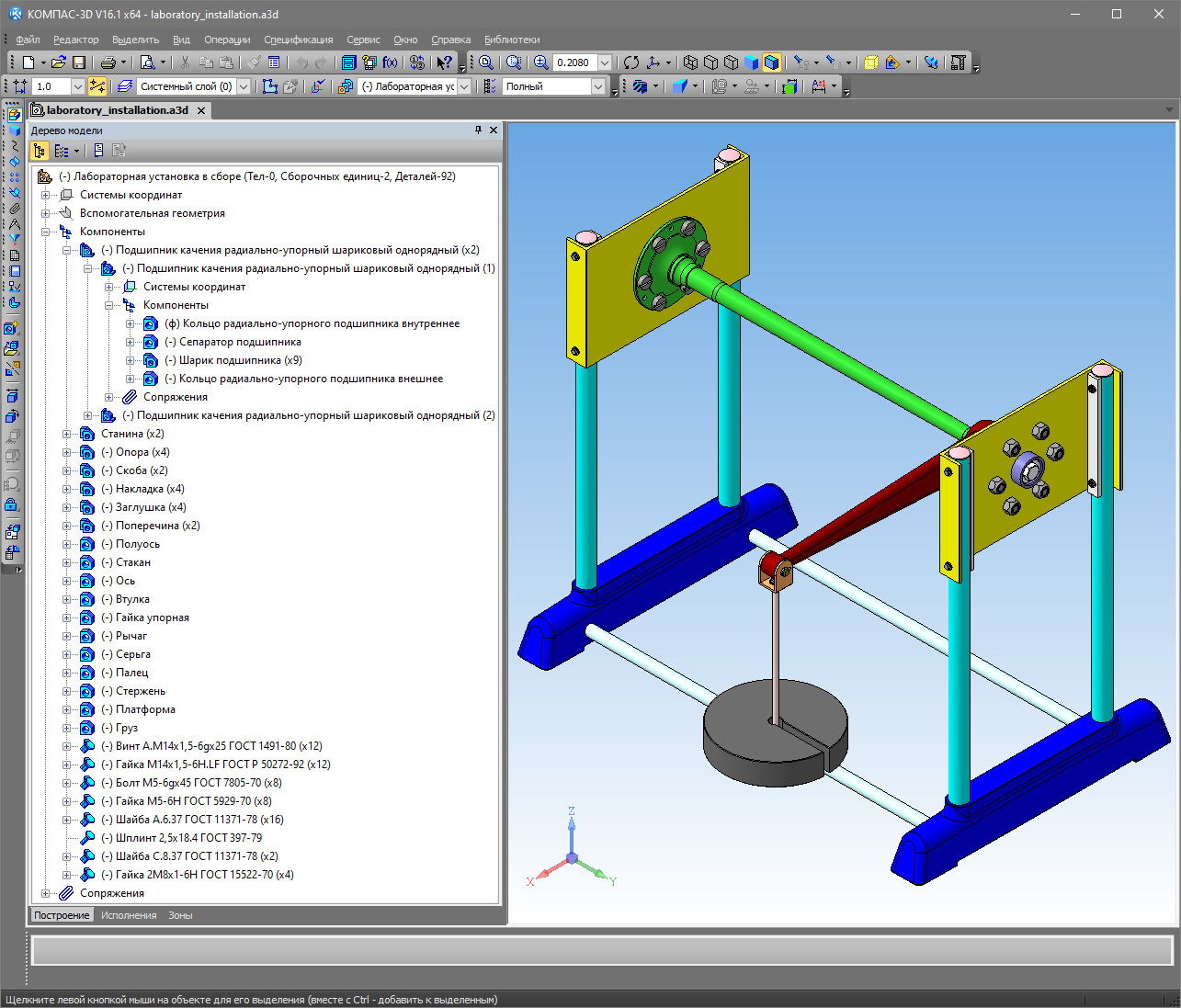 Рис. 2. Виртуальная модель механической части лабораторной установки в среде «КОМПАС-3D»
