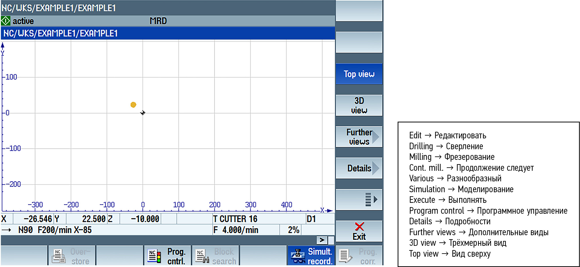 Рис. 3. Визуализация в процессе обработки в системе ЧПУ Sinumerik.