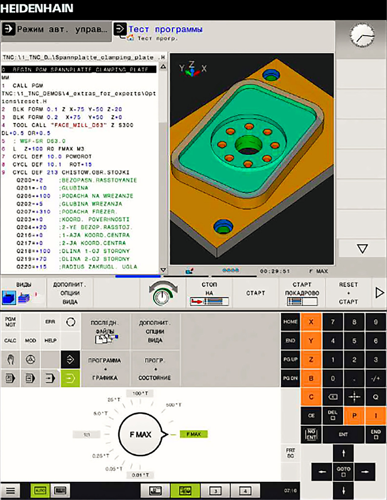 Функциональная возможность режима отладки в системе Heidenhein имеет покадровое воспроизведение симуляции процесса обработки, тем самым позволяет вовремя оператору оценить ситуацию, если процесс по какой-то причине может привести к какой-либо аварийной ситуации.