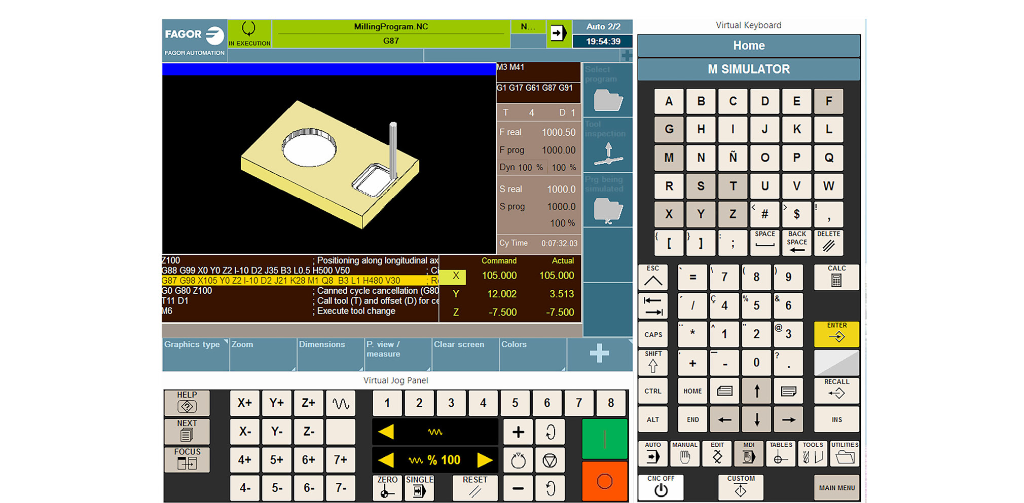 RESULTS: The study result is the fact that the visualization interface is critically important for operation, as it helps the operator to assess the abnormal situation quickly. Mistakes can be found at every stage of part machining setting-up. The mistakes can be made when positioning the part or the tool, at zero-point binding, at axes offset setting-up, etc. When machine equipment is set up, generally, difficulties take place if there is a different set-up for the other order. For these cases, in the CNC systems, such functional capabilities as processing visualization are necessary. This functionality is critically important, as it helps to find a mistake in time, to assess the danger level, and to fix it in time, that helps to prevent both the machine and the tool from failure and excessive mechanical impact.