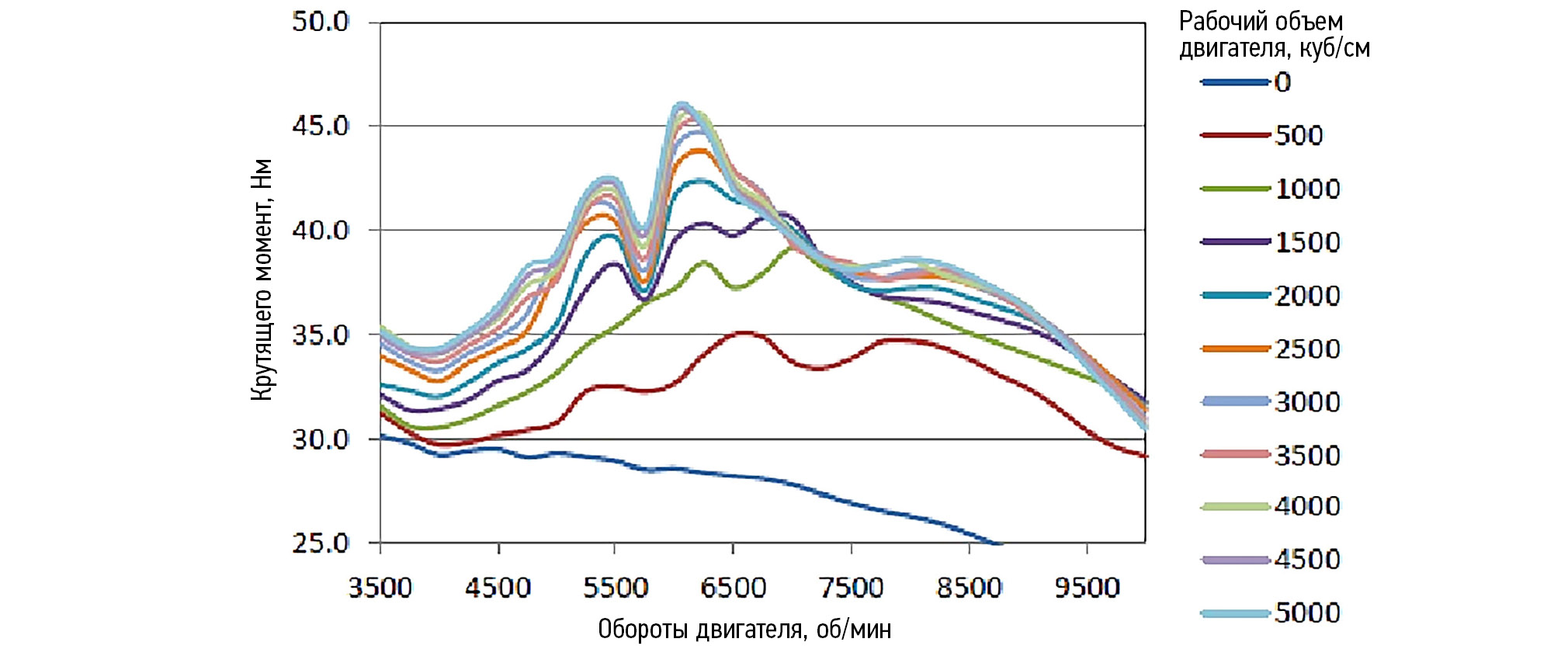 Рис. 2. Влияние объёма впускного ресивера на крутящий момент.