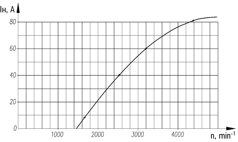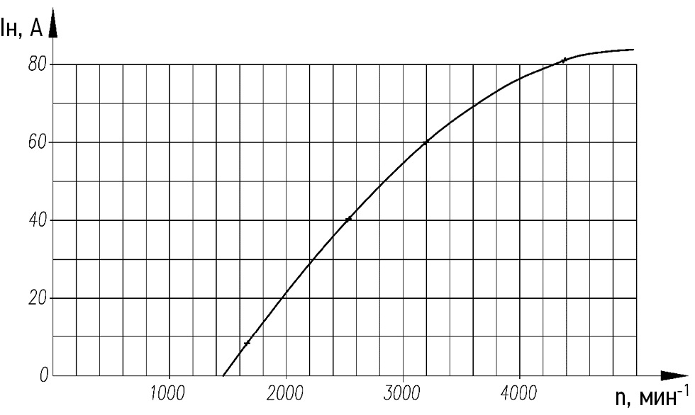 Рис. 8. Токоскоростная характеристика индукторного генера- тора 11.3701.