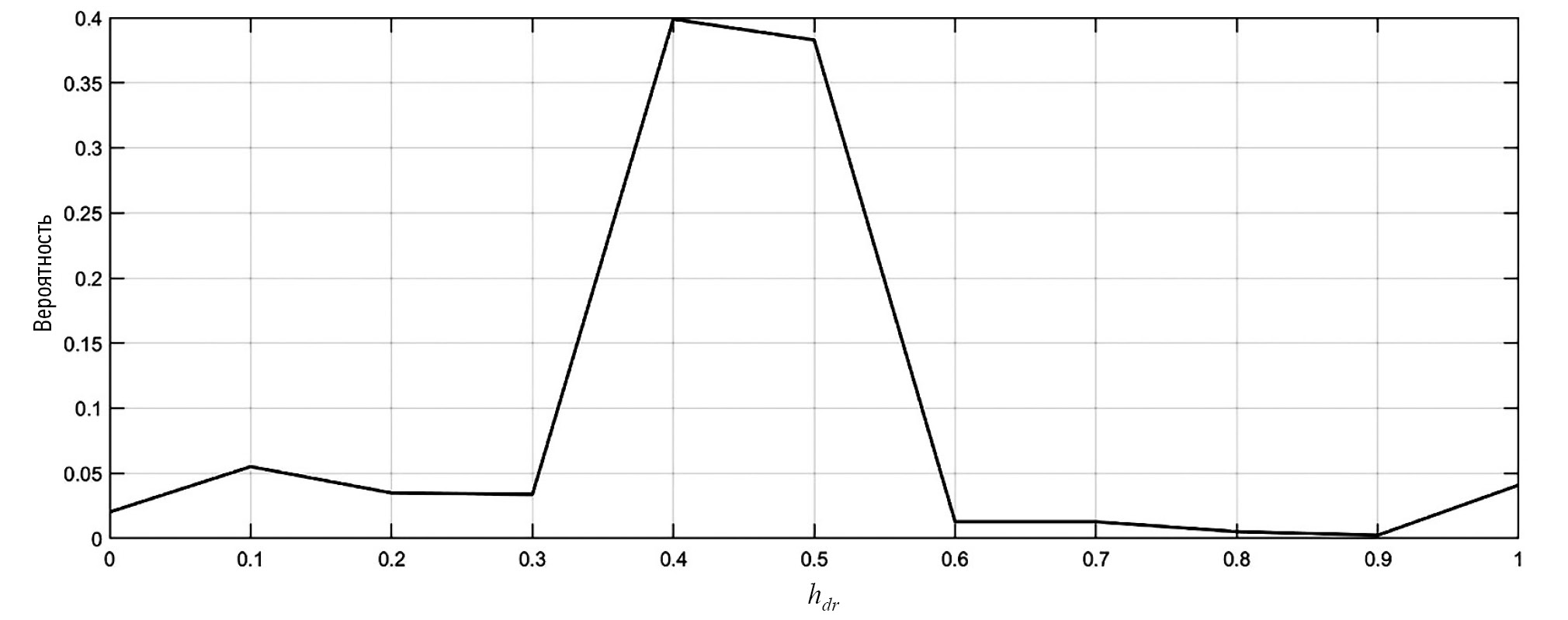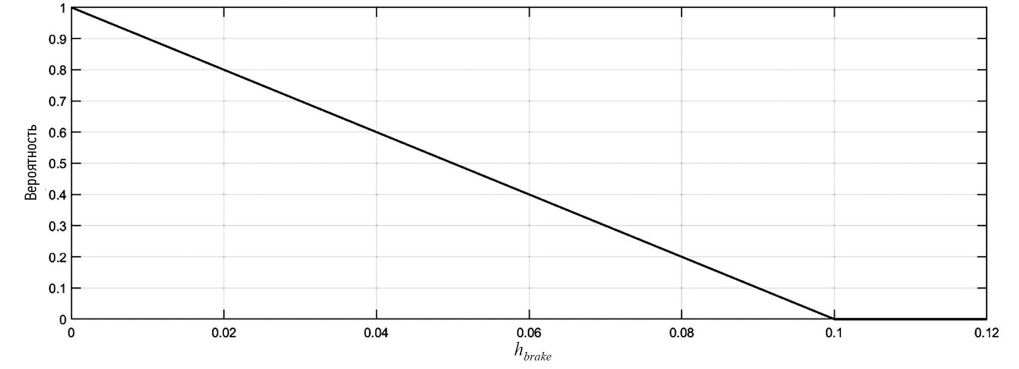 Рис. 4. Плотность вероятности положения педали тормоза для варианта с прямым управлением моментом (двухпедальное управление).