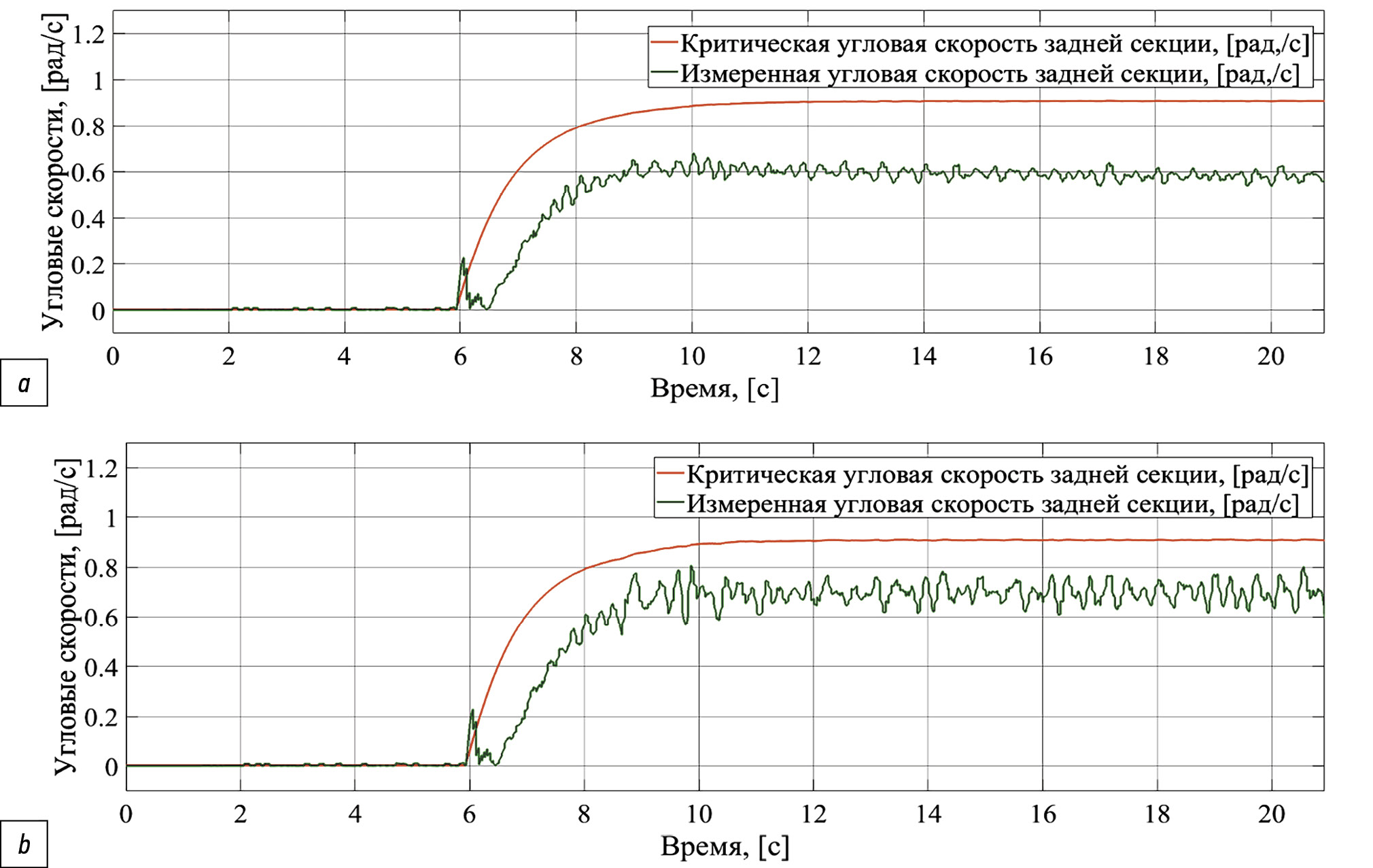 Разность критической и измеренной угловой скорости задней секции | 0,213 рад/с | 0,322 рад/с | + 33,8 % |