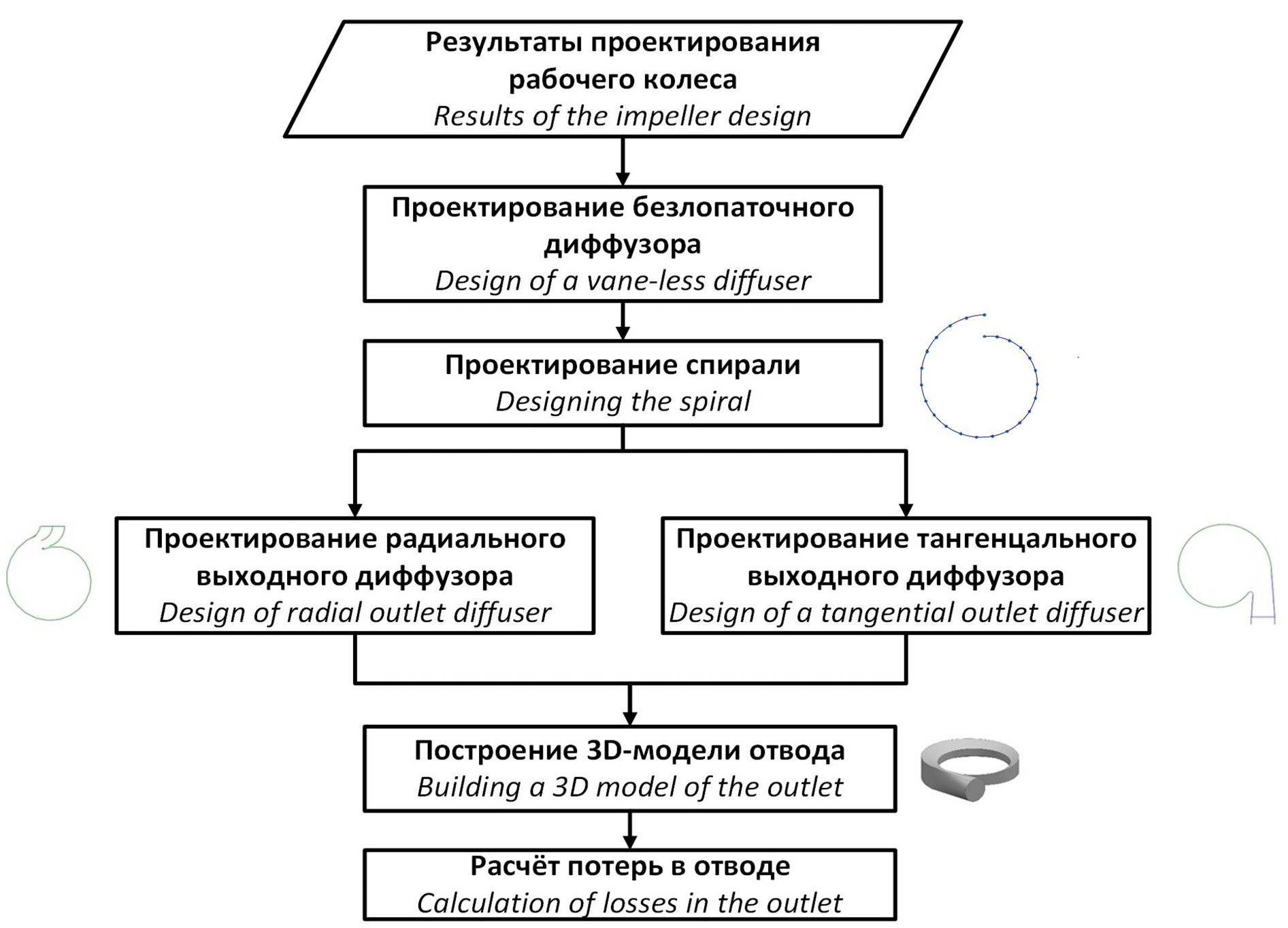 Рис. 7. Алгоритм проектирования спирального отвода.