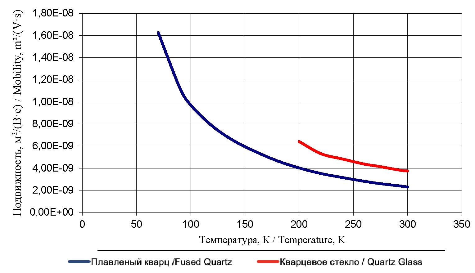 Рис. 1. Температурные зависимости подвижности двуокиси кремния.