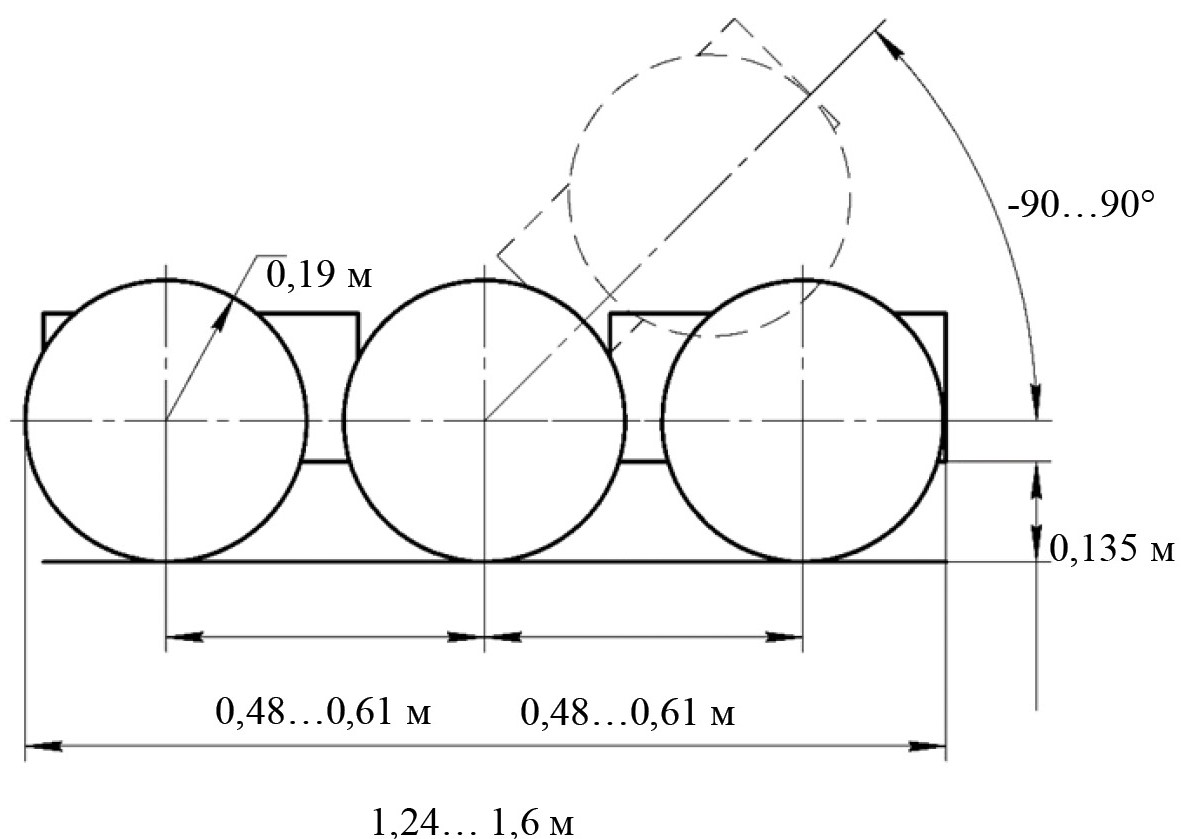 В качестве объекта исследования был выбран робототехнический комплекс, который представляет собой 6-ти колёсный трёхсекционный МР, имеющий привод складывания секций относительно поперечной оси и приводы линейного перемещения передней и задней секции относительно средней. Основные параметры МР представлены в табл. 1 и на рис. 8.