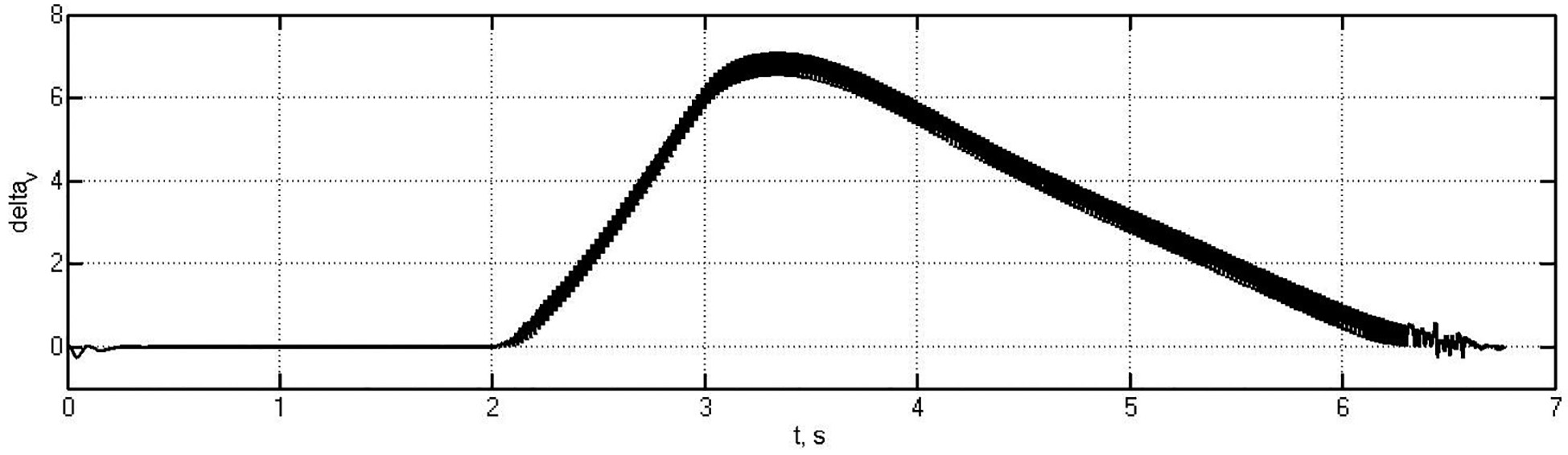 Fig. 3. The graph of the change in time of the diagnostic characteristics δV when braking the vehicle