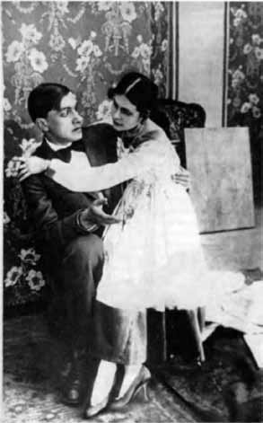 Поиски ответа на этот вопрос следует начать с уточнения: дебют Владимира Маяковского на экране состоялся, скорей всего, за пять лет до означенного «актерского полугодия» — в 1913 году, когда вышла легендарная картина «Драма в кабаре футуристов № 13» 3. По воспоминаниям очевидцев, на первых ролях в экстравагантной постановке выступили художники соперничающего с «Ослиным хвостом» Д.Бурлюка футуристического объединения «Бубновый валет» — М.Ларионов, Н.Гончарова и другие. О степени участия 20-летнего Владимира Маяковского в создании фильма можно судить лишь по позднейшим свидетельствам В.Шершеневича и Б.Лавренева, которые сходились лишь в том, что поэт появлялся в кадре «в цилиндре, в запахнутом пальто, в перчатках, с тростью», поскольку «у него была роль какого-то демонического человека» 4. Впрочем, это не означает, что сцена с участием Маяковского осталась в прокатной копии, но за неимением возможности проверить эту информацию есть основание в нее поверить: наставник поэта Давид Бурлюк представлен на одной из фотографий со съемок, значит и Маяковский был поблизости. Если придерживаться этой версии, то съемки «Драмы» были первым актерским опытом молодого поэта, следовательно, именно в 1913 году жаждущий славы футурист Маяковский подвергся соблазну стать кинозвездой. Вновь — и с новой силой — соблазн появился в 1918 году, когда Маяковский уже стал признанной звездой литературы и открыто заявлял: «Я никогда никому не завидовал. Но мне хотелось бы сниматься для экрана… Хорошо бы сделаться этаким Мозжухиным» 5.