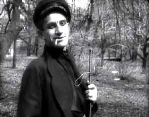 Игра Владимира Маяковского, в целом, вписывается в означенную традицию, хотя он пытается привнести в нее больше динамики — так, с первых кадров в руках героя появляется щегольской кавалерийский хлыстик, которым он активно манипулирует, выражая эмоциональное состояние своего героя: вертит пальцами (беззаботность), сбивает траву и ветки (волнение или злость), отбивает дробь (нетерпение). Сам по себе аксессуар, герою по статусу не принадлежащий, действующий в «нештатных» условиях и ситуациях, выглядит явно ворованным, а следовательно, вполне «хулиганским», и порождаемые с его помощью «жесты-изображения» становятся вполне понятны зрителю. Вряд ли это прямая реплика тросточки Чаплина и восходящая к фирменным жестам бродяги «Шарло» аллюзия, однако и ничего общего с «новаторской актерской техникой» здесь все же нет. Как нет ее и в жестах панического изумления в сценах видений учительницы в саду или трактире (снимает фуражку, проводит рукой по лицу), а также в жестах нарочитой независимости или высокомерной гордости, когда герой, подбоченясь, не единожды становится в позу федотовского «свежего кавалера», в жестах романтического влюбленного (преклонение колен, целование края платья) и т.п. По сути, все это — многократно отработанные немым кинематографом жесты, классические позы и движения, которые мог сыграть достаточно уверенно («без натуги») актер-дилетант. Отдельного внимания заслуживает взгляд — как особый жест, для немой кинодрамы чрезвычайно важный.