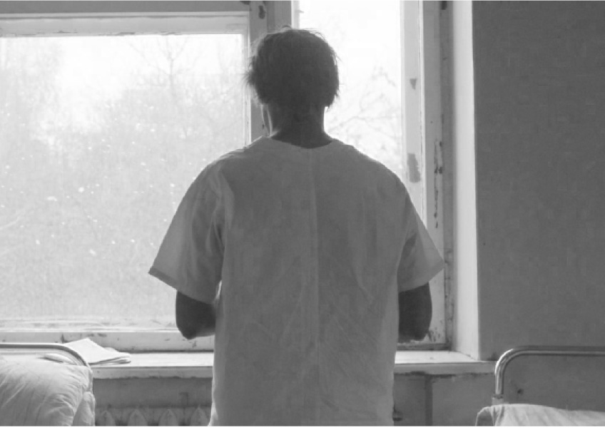 The hospital becomes a favorite action site for films with a “hollow character” addressing the spectator’s sensitivity. Surprisingly, even in the brisk sport drama Upward Movement the hospital is a significant place, becoming a meaningful part of the film’s artistic structure. Body is what can be shown in the cinema—it is cinegenic. The body surface occupies exceptionally much space in Balagov’s film; the child is first presented to the spectator in full absence of individual features, as a pure body, as an object. He sits in a galvanized bath, frozen under water spurts. The unusual angle strengthens the estrangement effect. The same estranging optics is applied to the scene in the bathhouse, where Iya and Masha are surrounded by a lot of other bodies—naked extras who are not characters of the film. There is nothing in this nudity that we could call eroticism or intimacy; by placing the accent on bodily weakness, its fragility is clear. The author stresses that body is subject to illnesses and traumas. It is in the bathhouse that Iya sees a scar from a shrapnel wound on Masha’s body.