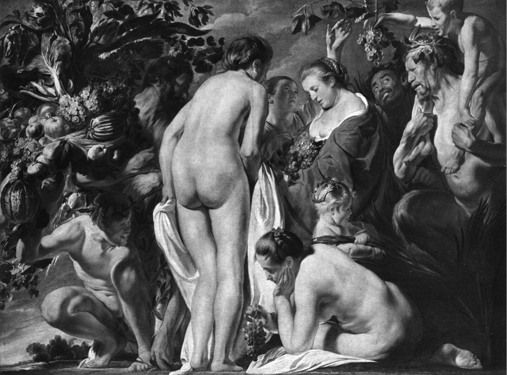 На картине Якоба Йорданса образ земного плодородия подан именно как аллегория (рис. 4). Символы, безусловно, присутствуют, но указывают они преимущественно не на общий смысл, а на свое собственное содержание. Общий смысл, интегральное значение картины отражается в ином: в значительной мере это декоративное панно, красивое по пластике и цвету, призвано усладить вкус, доставить удовольствие. В нем все богато, немного дробно, но очень пышно. Это украшение, драгоценность — таков основной смысл живописного полотна Якоба Йорданса. Глубину содержания картины искать сложно, здесь все на поверхности, ведущее семантическое содержание не прослеживается. Но принижать это произведение было бы неверно. Оно блестяще решает задачу пиршества тональности и цвета. Если даже представить это полотно обобщенно, как бы через нерезкое стекло, то и тогда оно не утратит смысл образа богатого, виртуозно завязанного пластического пятна, построенного на тональных и цветовых контрастах.