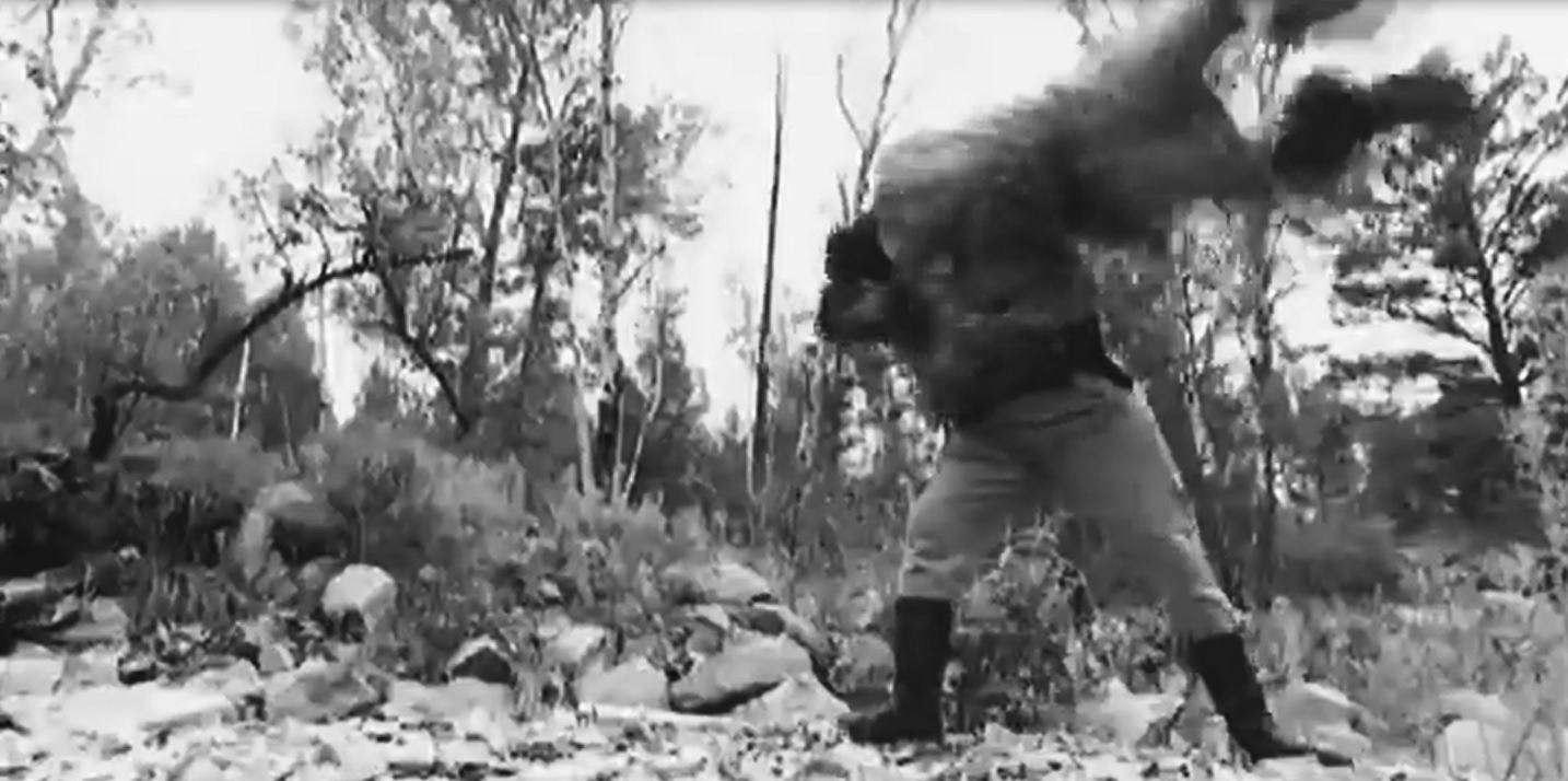 По пластическому рисунку мизансцены видно, что сначала происходит линейное передвижение соперников вперед-назад, напоминая предварительную оценку сил противника перед боем, и только затем соперники переходят к схватке, напоминающей, за исключением ряда деталей, мизансцену в отечественном фильме.