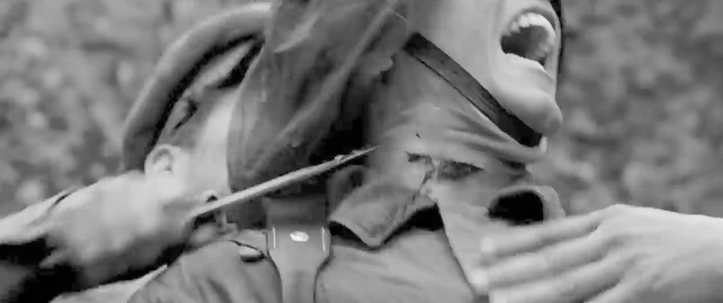 В качестве примера построения образа войны посредством кинотрюка обратимся к экранизациям повести Бориса Васильева «А зори здесь тихие…» и проанализируем один из наиболее запоминающихся эпизодов, представленный в трех фильмах. Это рукопашный бой старшины Федота Евграфыча Васкова с двумя немецкими диверсантами, где финал смертельной схватки видоизменяется в результате включения в действие женщины — бойца Евгении Комельковой.