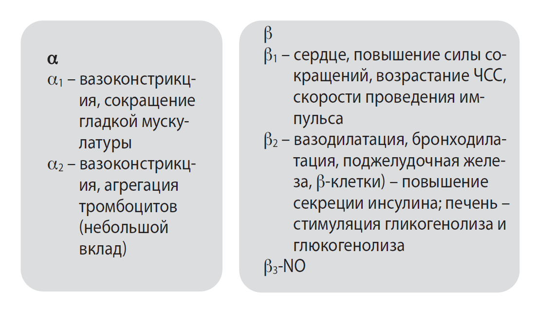 Типы и локализация адренорецепторов.