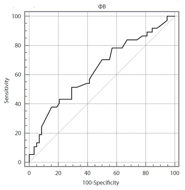 ФВ ЛЖ (2D) | ≤58,2 | 43,2 | 79,3 | 0,63 | 0,528–0,730 |
