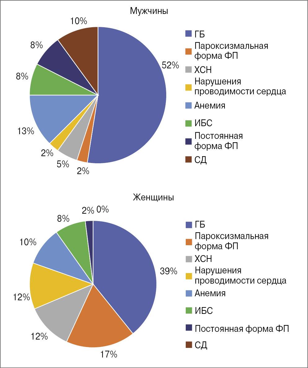 Рис. 1. Процентное соотношение ССЗ среди мужчин и женщин.
