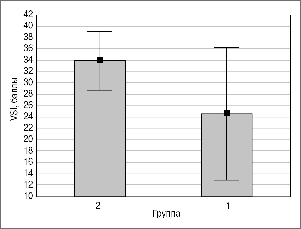 Рис. 1. Сравнение средних значений показателя VSI в 1 и 2-й группе.