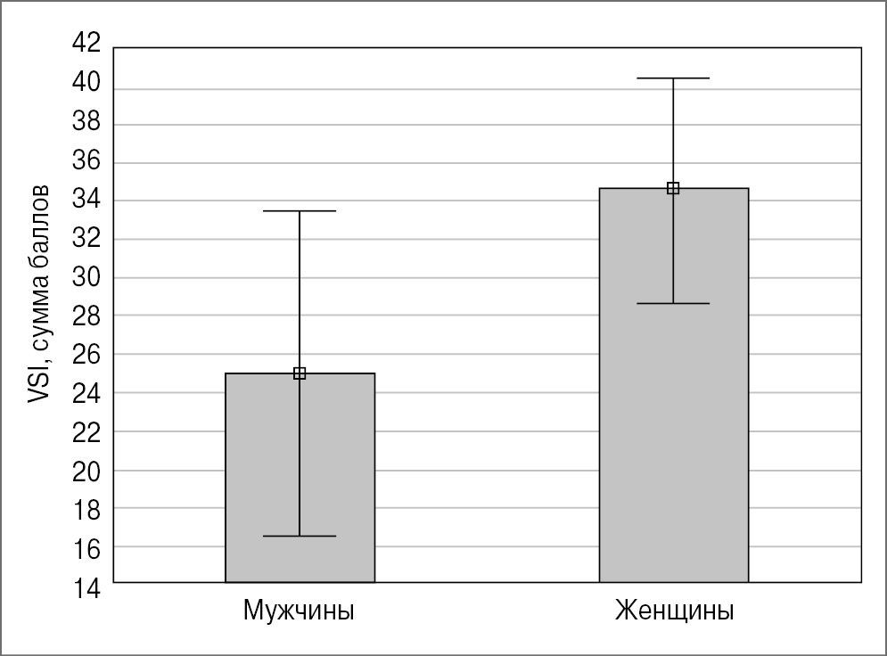 Рис. 2. Сравнение средних значений VSI у мужчин и женщин.