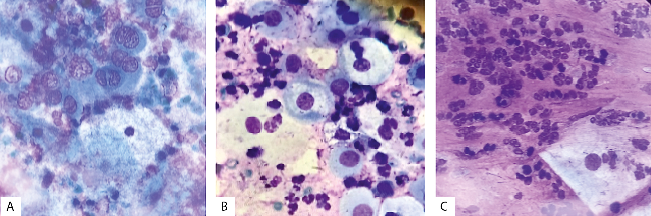 Note: A — histiocytes; B — coilocytes; C — mixed infection.
