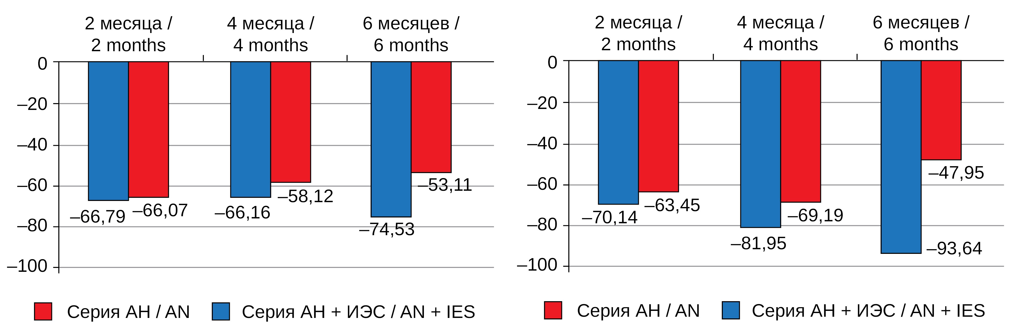 В силу выраженной межиндивидуальной вариативности TFI разница этого показателя в сериях АН и АН + ИЭС подтвердилась статистически только у самцов в срок 6 месяцев после операции (p = 0,0338).