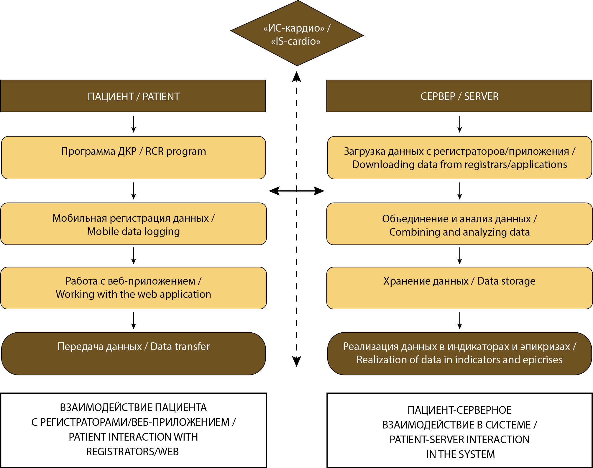 Практическая реализация ДКР находится в области компетенций цифровых платформ, в идеале позволяющих формировать персонализированные домашние программы ДКР из набора доказательно-обоснованных вмешательств, соответствующих принципам «управляемого самоконтроля» и интересам пациента [14]. Основным инструментом деятельности участников таких программ является ДКМ, реализованный на базе смартфонов и приборов цифровой регистрации данных, и направленный на обеспечение адекватного контроля безопасности и обратной связи с пациентом.