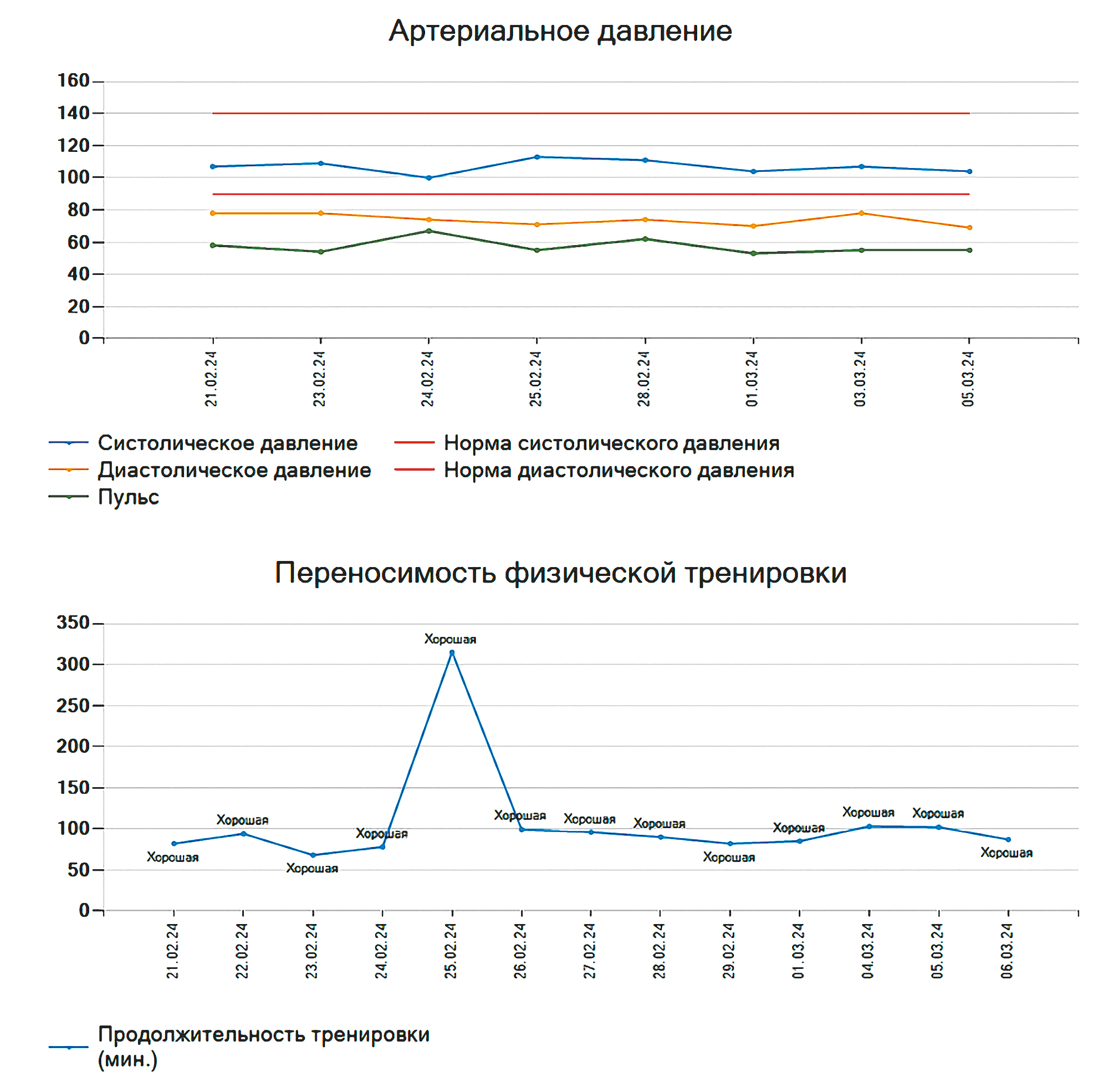 - Саморегистрация пациентом данных о физической активности, полученных с помощью приложения смартфона/ смарт-часов/ ручного шагомера, и внесенных в веб-приложение «Переносимость физической нагрузки» в «Личном кабинете пациента»: продолжительность ФТ, максимальная ЧСС во время ФТ, индивидуальная переносимость физической нагрузки по шкале Борга 6–20 [20].