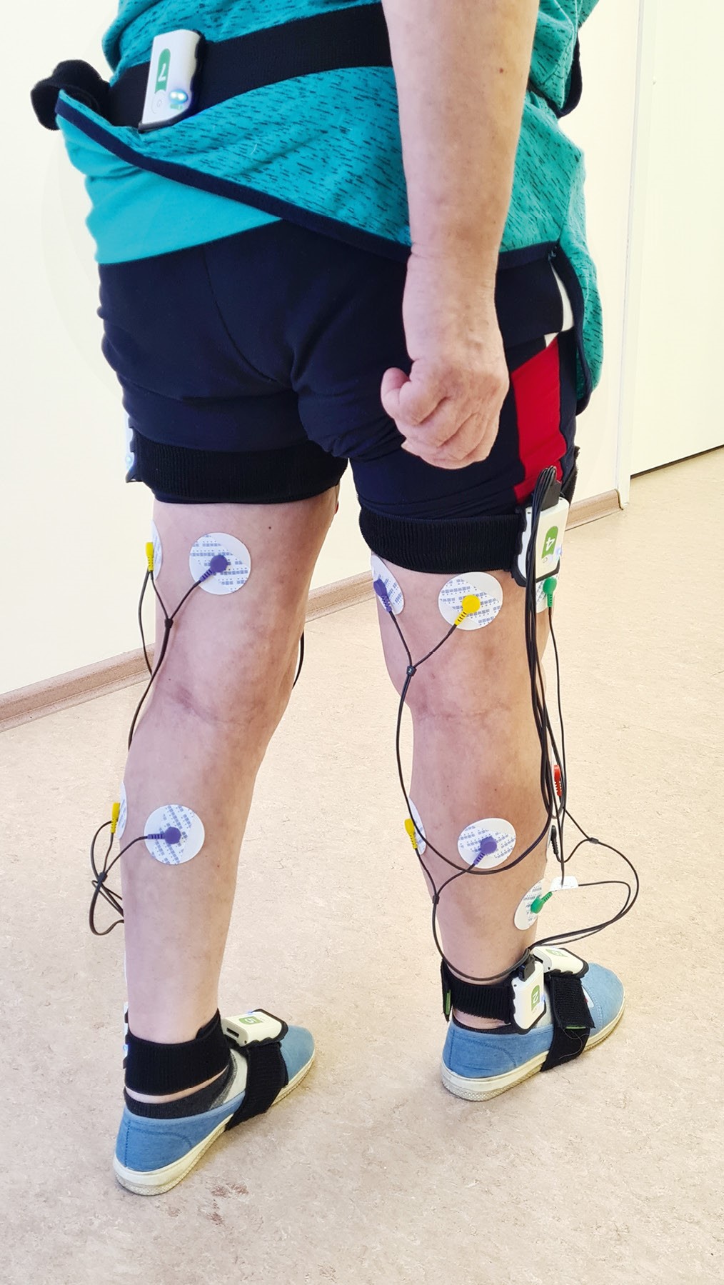 Fig. 1. The process of recording kinematic and electromyographic parameters during the gait analysis