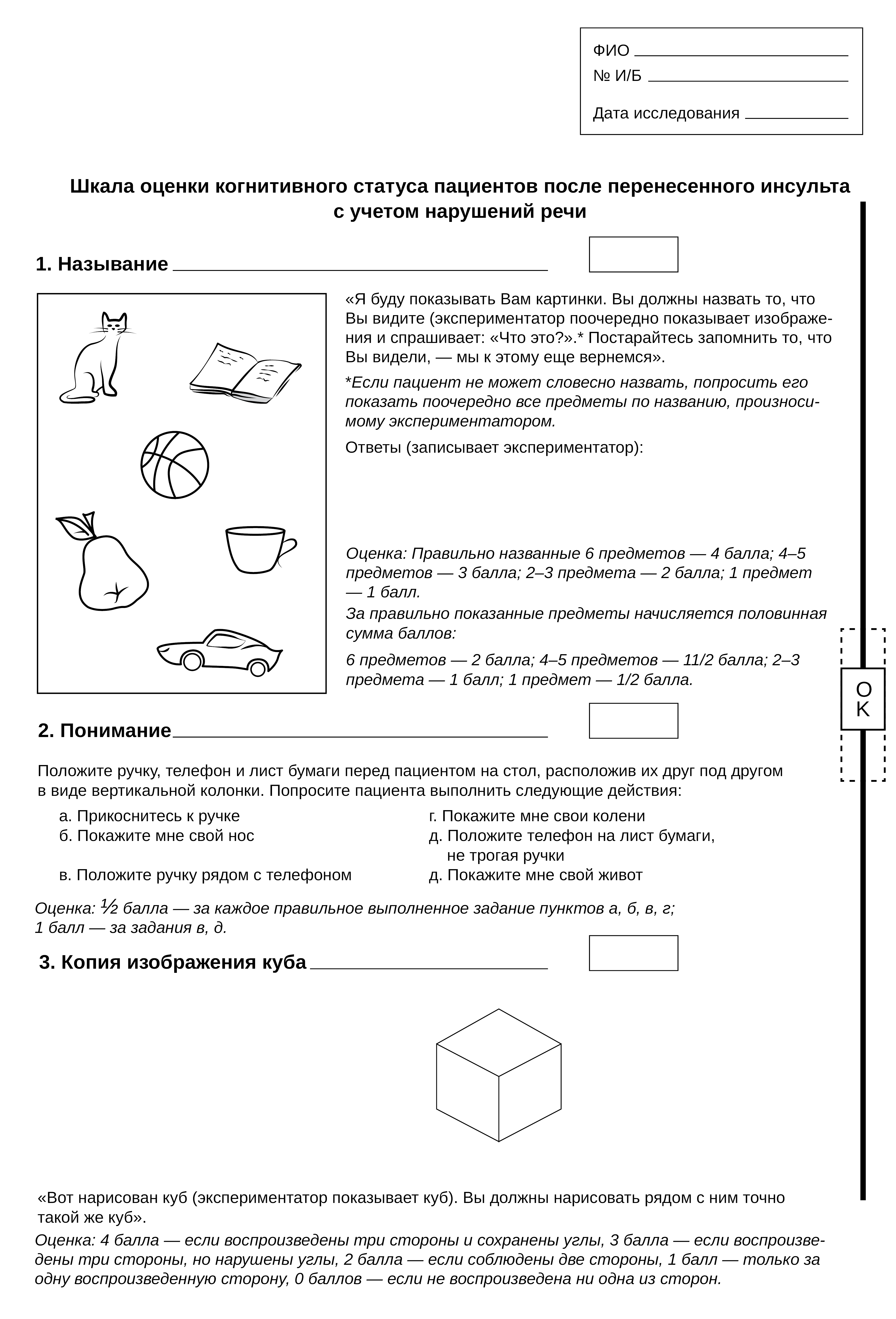 Fig.1. Stimulus material "Scale for cognitive status assessment of the after-stroke patients with speech disorders"