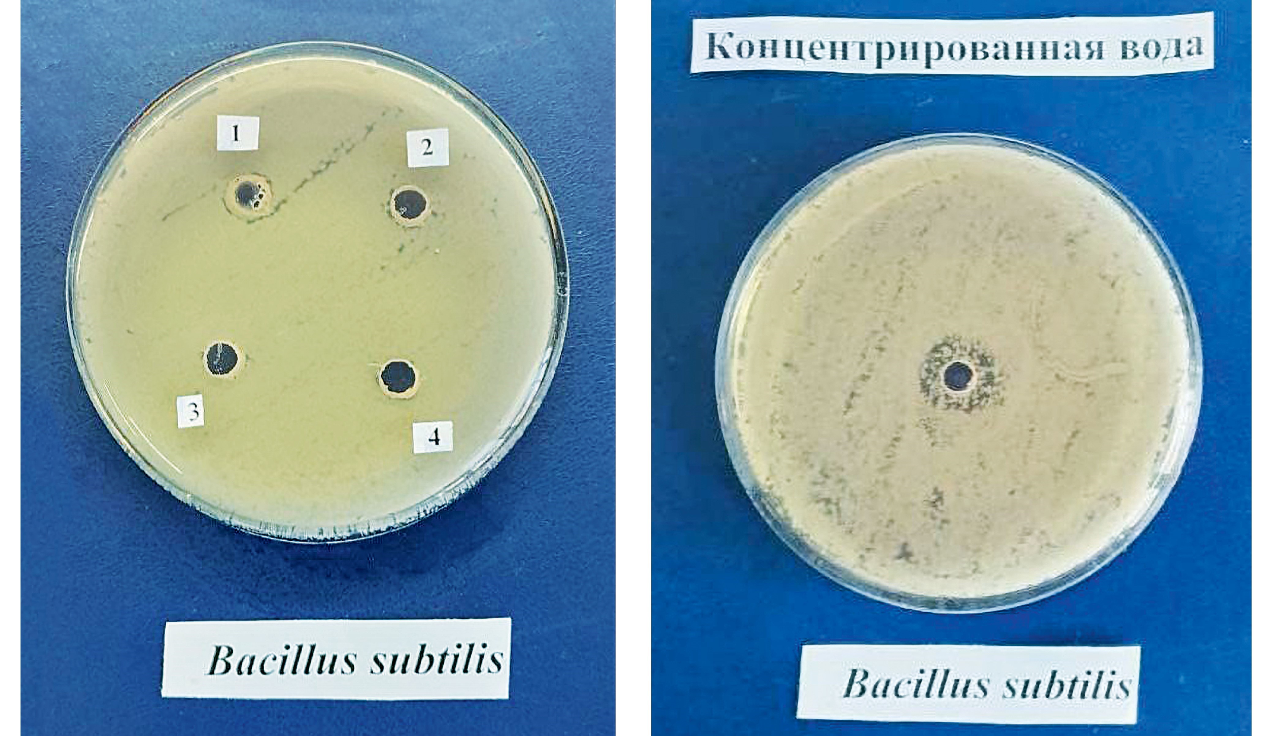 Рис. 3. Антимикробная активность образцов воды к Bacillus subtilis