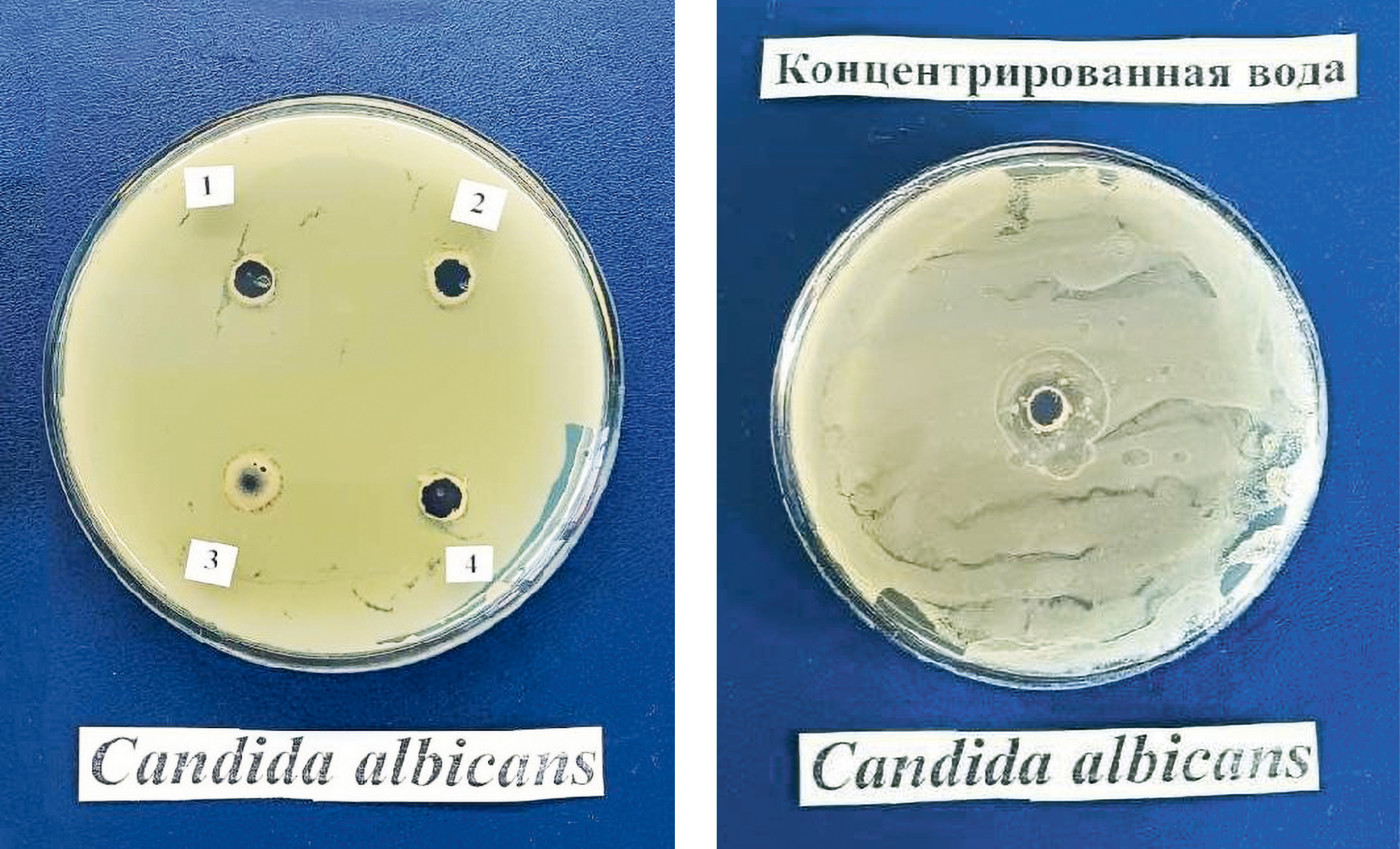 Рис. 4. Антимикробная активность образцов воды к Candida albicans