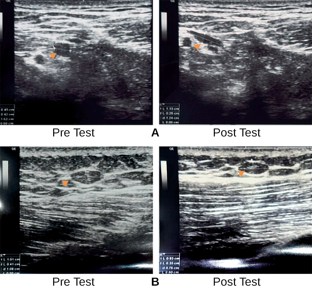 Fig. 2. Ultrasound Images of Neck Muscles Pre- and Post-Dry Needling Showing Changes in Trigger Point Size