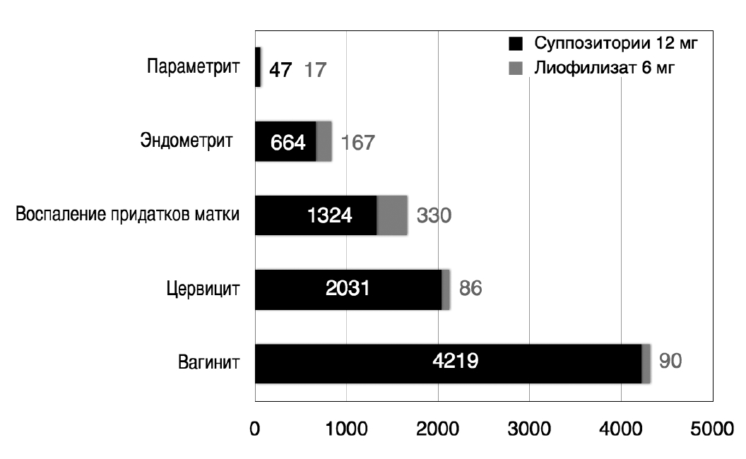 Conclusion. The drug is well tolerated, practically free of side effects and addiction, convenient in use and is compatible with any treatment regimen. In the treatment of lower genital tract inflammatory diseases, it is optimal to use the drug in the form of suppositories while in the treatment of PID in the form of a lyophilisate.