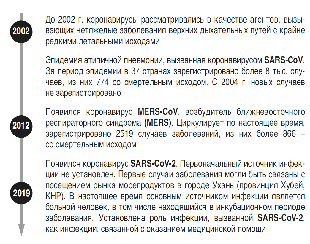 До 2002 г. коронавирусы рассматривались в качестве агентов, вызывающих нетяжелые заболевания верхних дыхательных путей с крайне редкими летальными исходами