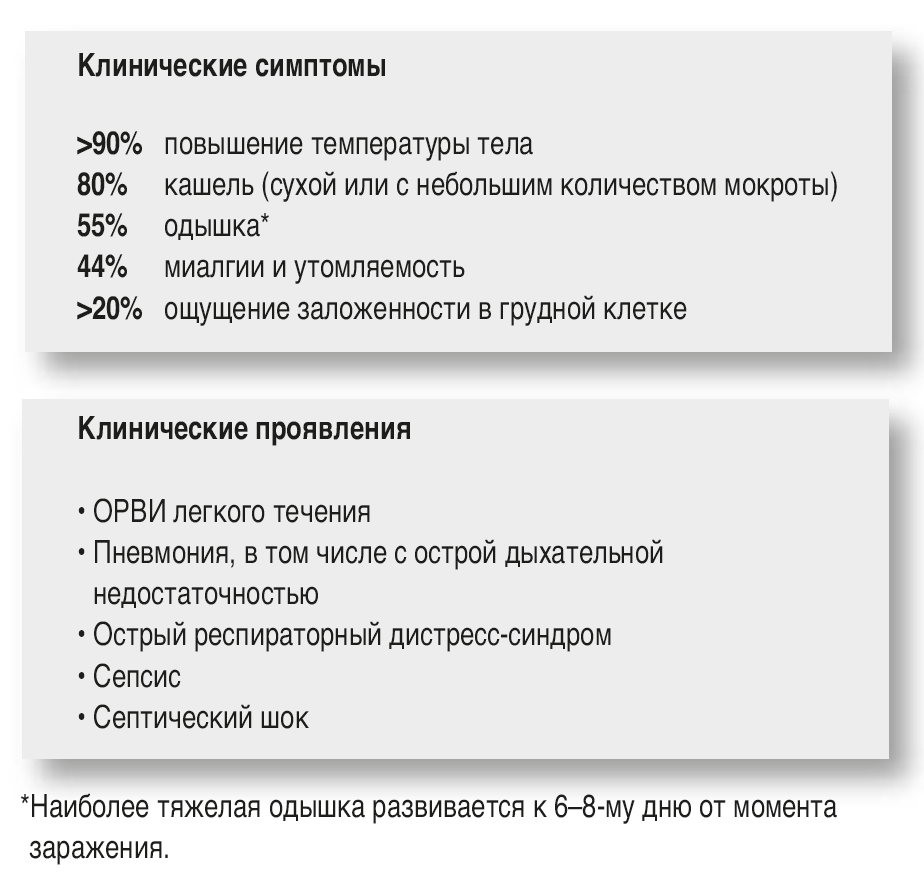 Кашель | Сухой, умеренно выраженный | Сухой, мучительный, сохраняется 7–10 дней, может быть боль за грудиной (на 3-и сутки) | Сухой, лающий, сохраняется длительное время (12–21 день) | Сухой приступообразный, продолжительностью до 3 нед, сопровождающийся болями за грудиной | Влажный | Отсутствует |