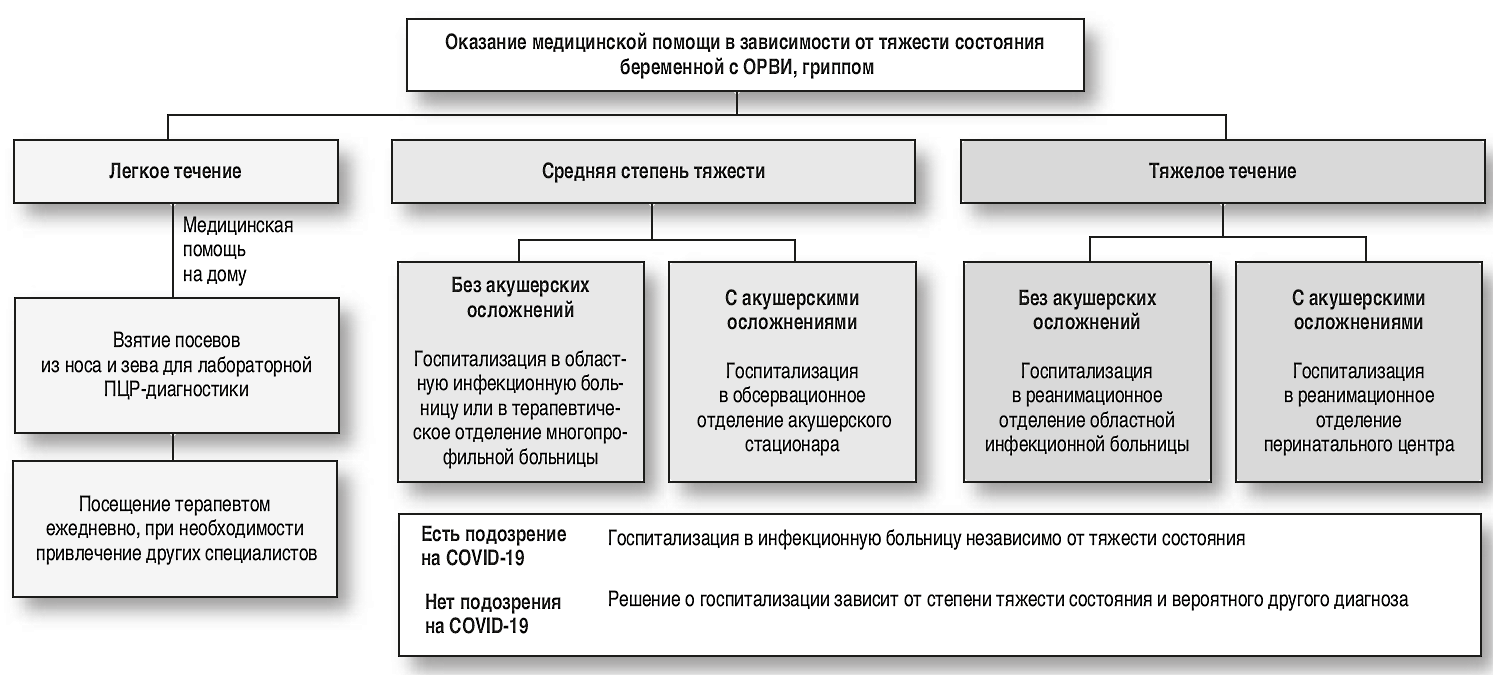 Методические рекомендации, разработанные большим коллективом авторитетных российских ученых, рекомендуют придерживаться следующих правил при ведении беременности у пациентки с новой коронавирусной инфекцией [40].