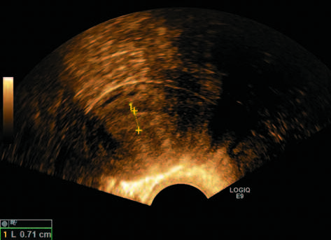 Рис. 1. Пациентка Э., 61 г. ПМК. Толщина эндометрия – 7,1 мм. РЭ (собственные данные).
