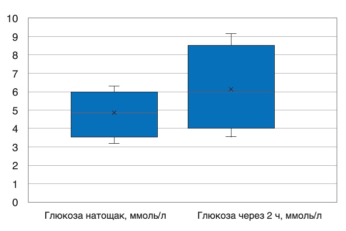 Рис. 1. Уровень глюкозы при проведении перорального глюкозотолерантного теста.