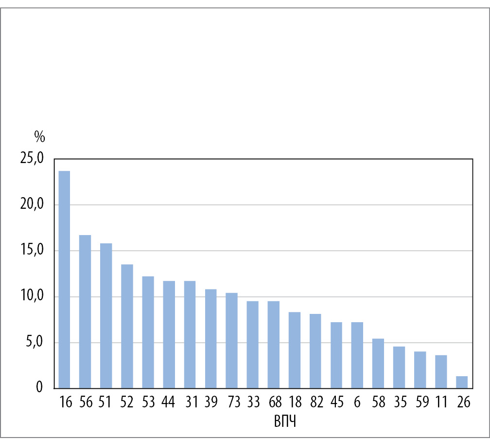 Рис. 6. Распространенность ВПЧ среди женщин группы обследования.