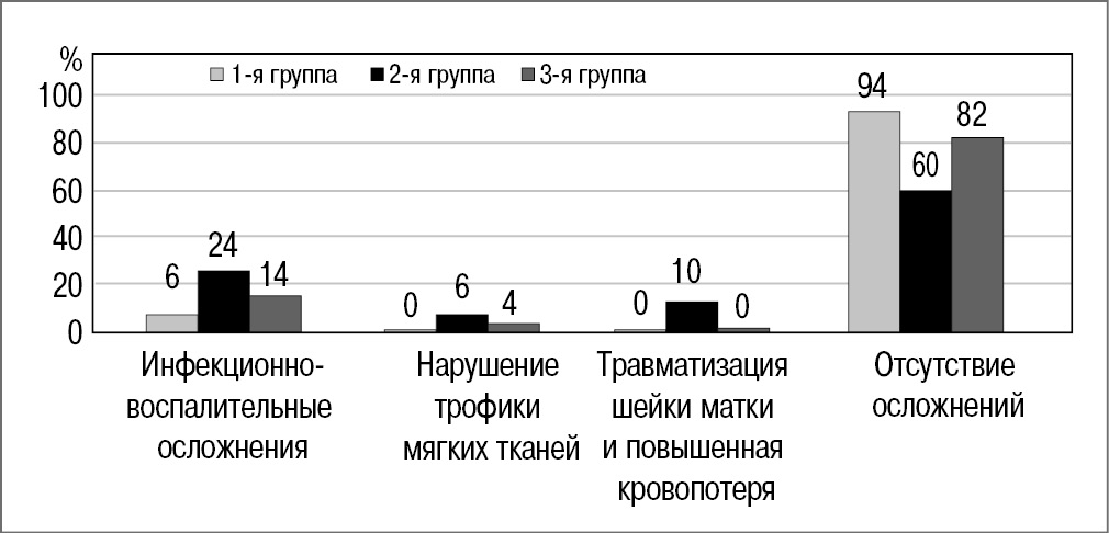 Рис. 3. Основные осложнения после проведения коррекции ИЦН. / Fig. 3. Main complications after the cervical incompetence (CI) correction.