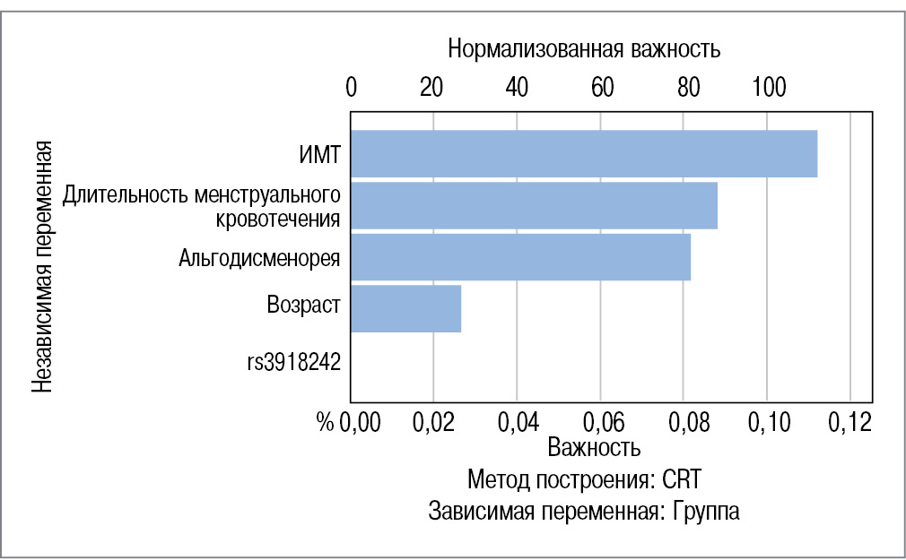 При этом следует сделать вывод, что вариант генотипа имеет наименьшую значимость при определении возможности развития ЭКЯ (рис. 3).
