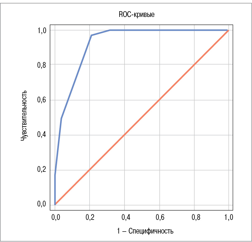 Рис. 4. ROC-кривая, отражающая прогностическую силу модели. / Fig. 4. ROC- curve that represents the predictive power of a model.